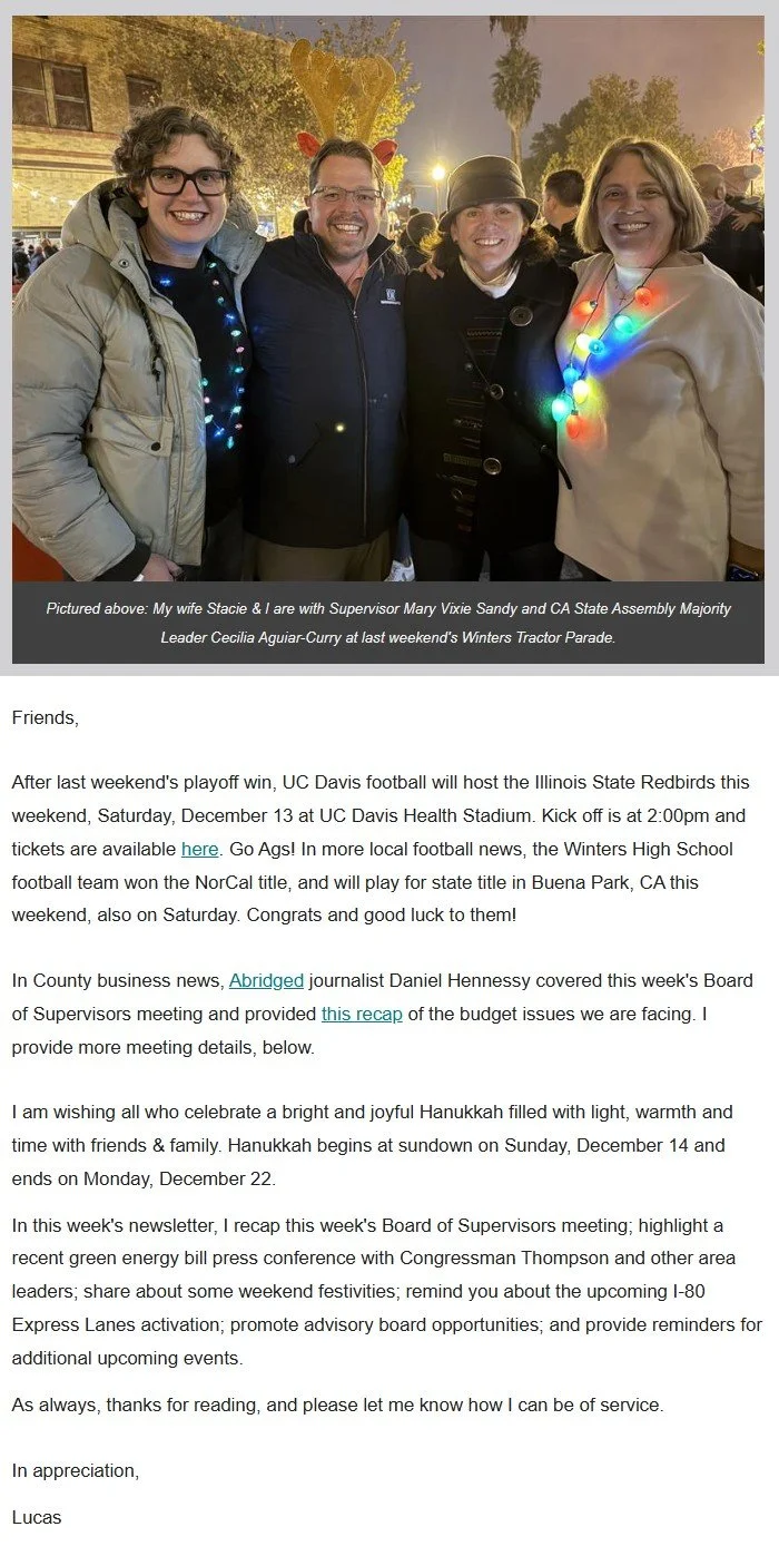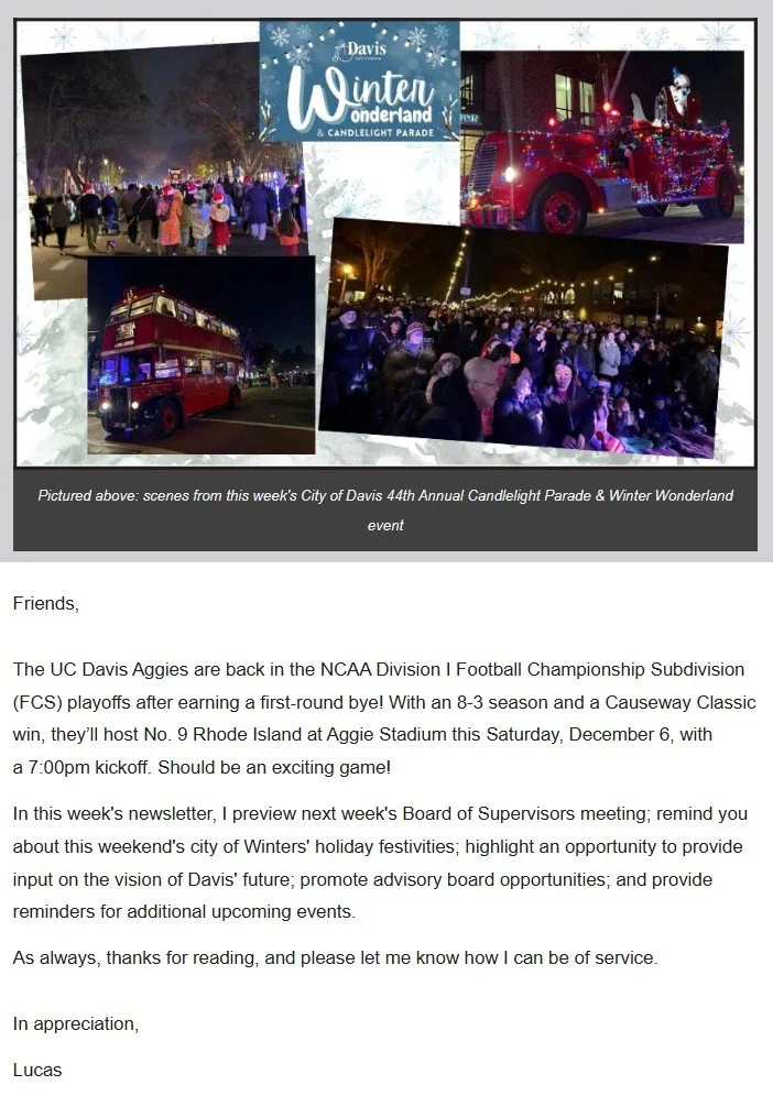 Aggie playoffs football; BOS preview; community input & volunteers sought